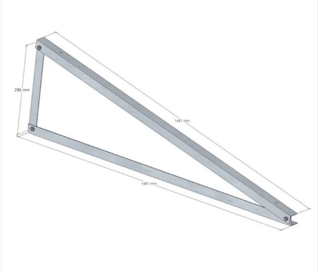 La struttura in alluminio consente di montare moduli fotovoltaici su un tetto piano. E' possibile realizzare una struttura portante con angolo di inclinazione diverso dall'orizzontale e con lunghezze dei fianchi differenti.