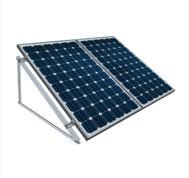La struttura in alluminio consente di montare moduli fotovoltaici su un tetto piano. E' possibile realizzare una struttura portante con angolo di inclinazione diverso dall'orizzontale e con lunghezze dei fianchi differenti.