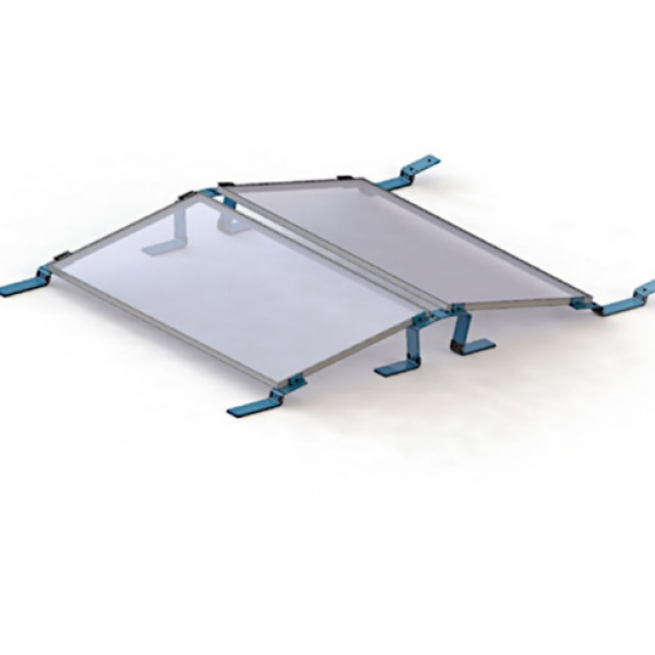 La base centrale con tappetino protettivo fa parte del sistema di montaggio Aerocompact 2.1+ . L'intero sistema è predisposto per il montaggio di pannelli fotovoltaici su tetti piani orientati est-ovest. I moduli sono montati con orientamento orizzontale e l'angolo di inclinazione dei moduli è di 10 gradi. La struttura comprende anche altri elementi acquistabili separatamente.