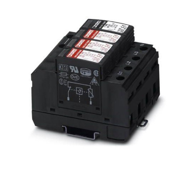 Limitatore di sovratensione composto da base e spina di protezione, per il montaggio su guida profilata NS 35/7,5, tensione nominale: 230 V AC, disposizione 3 + 1. Caratteristiche distintive del prodotto: