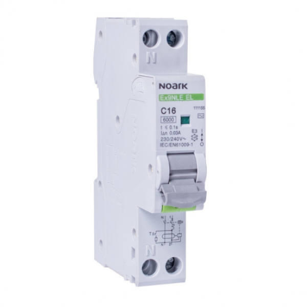 Gli interruttori differenziali con protezione da sovracorrente Ex9NLE sono progettati principalmente per applicazioni domestiche. Questi interruttori automatici sono larghi un modulo, risparmiando uno spazio di un modulo nel quadro rispetto a un RCD standard con elemento di massima corrente. Si basano su un rilascio elettronico - misurazione più accurata della corrente differenziale. In questi dispositivi non c'è la magnetizzazione dello sganciatore, quindi non c'è l'obbligo di verificarli periodicamente, ma devono essere eseguiti regolarmente, secondo le normative e gli standard applicabili. Per la serie Ex9NLE, si consiglia di testare ogni 6 mesi per condizioni normali e ogni mese per condizioni severe.