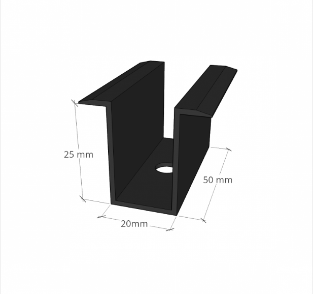 Fibbia centrale, nera, alluminio. Utilizzato per il montaggio di moduli fotovoltaici con uno spessore del telaio di 35, 40, 45 e 50 mm sui profili di montaggio. Il morsetto viene fissato tra i pannelli fotovoltaici con bullone inox e dado quadro M8.