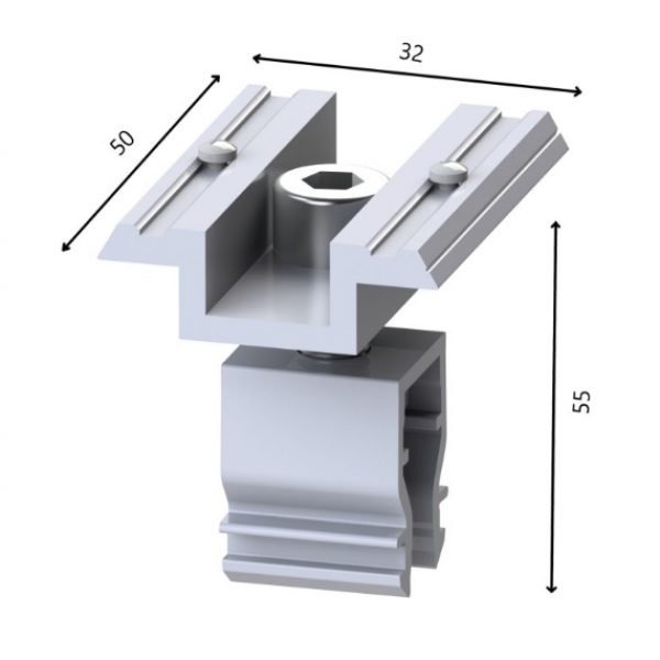 Il morsetto centrale Alumero è una parte essenziale del sistema di montaggio AS 2.1. La possibilità di regolazione nell'intervallo da 30 a 45 mm consente l'installazione di pannelli fotovoltaici di vari spessori. Realizzato in alluminio di alta qualità, è resistente alla corrosione.