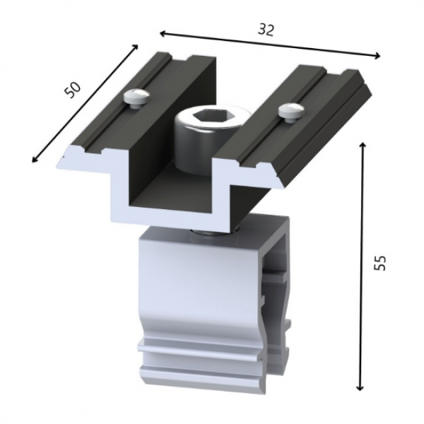 Il morsetto centrale Alumero è una parte essenziale del sistema di montaggio AS 2.1. La possibilità di regolazione nell'intervallo da 30 a 45 mm consente l'installazione di pannelli fotovoltaici di vari spessori. Realizzato in alluminio di alta qualità, è resistente alla corrosione.