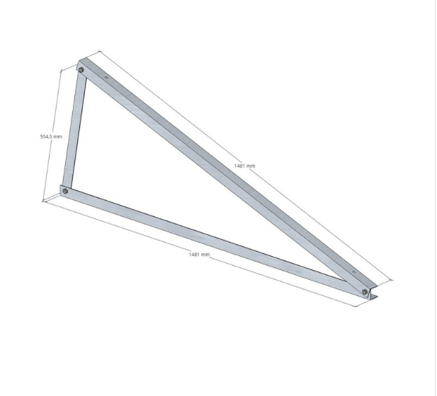 La struttura in alluminio consente di montare moduli fotovoltaici su un tetto piano. E' possibile realizzare una struttura portante con angolo di inclinazione diverso dall'orizzontale e con lunghezze dei fianchi differenti.
