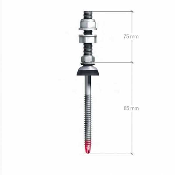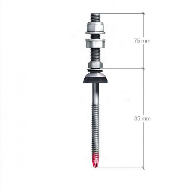 Il bullone a doppia filettatura M8X85/M10X70 è realizzato in acciaio inox e serve per il fissaggio diretto degli impianti fotovoltaici alla sottostruttura in acciaio. Il connettore solare EJOT è il primo connettore in acciaio inossidabile approvato dall'Istituto tedesco per la tecnologia degli edifici (Dibt) che può essere utilizzato per il montaggio di impianti fotovoltaici su tetti in lamiera trapezoidale o pannelli sandwich. Il nuovo connettore è realizzato in acciaio inossidabile A2 (AISI 304) o A4 (AISI 316) e ha una punta di perforazione in acciaio temprato, quindi non è necessario praticare un preforo in sottostrutture sottili in acciaio fino a 3 mm di spessore. Ciò consente di forare e fissare in un'unica fase di lavoro.