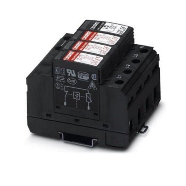 Limitatore di sovratensione composto da base e spina di protezione, per il montaggio su guida profilata NS 35/7,5, tensione nominale: 230 V AC, disposizione 3 + 1. Caratteristiche distintive del prodotto: